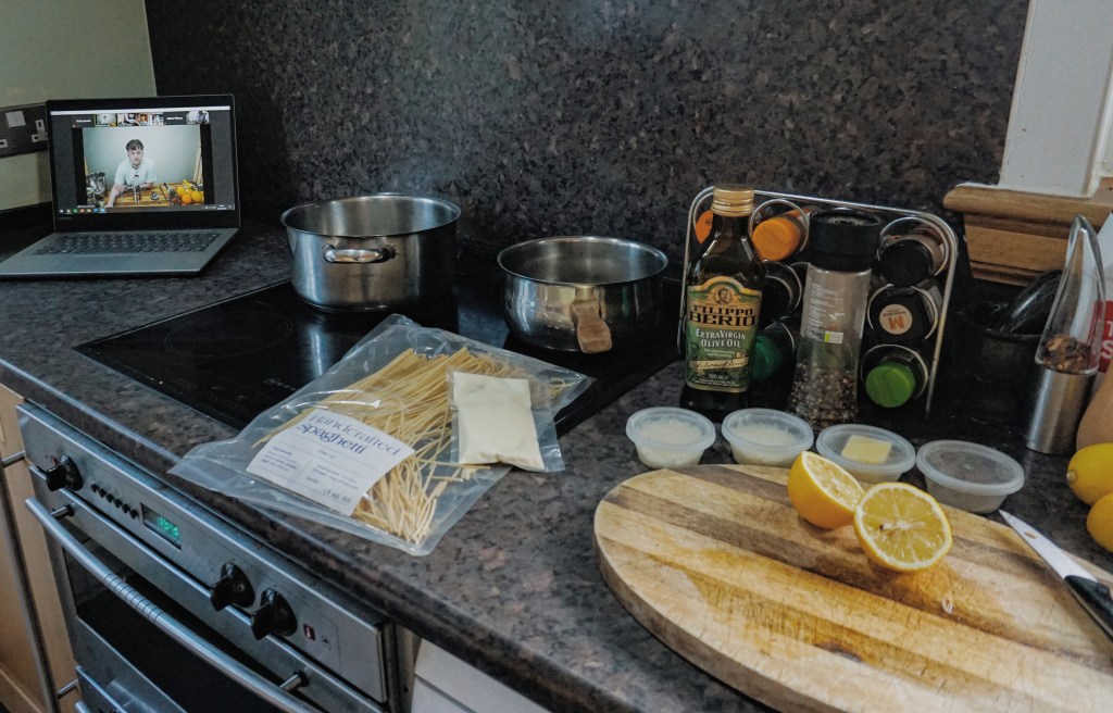 When I heard about the opporunity to take part in a pasta and cocktail masterclass from the comfort of my own home I was like heeeell yeah! The event was a pairing of Aberdeen businesses Boozy Events and PASTA Aberdeen, so last night I whipped up a “Summer Thyme” cocktail and some Spaghetti al Limone. It was the absolute perfect thing just now in lockdown but would also be an amazing thing to do when you just can’t be bothered going out. The experience cost £39.95 and included delivery of the ingredients to make cocktails and dinner for two as well as some fancy coffee and tiramasu for dessert.