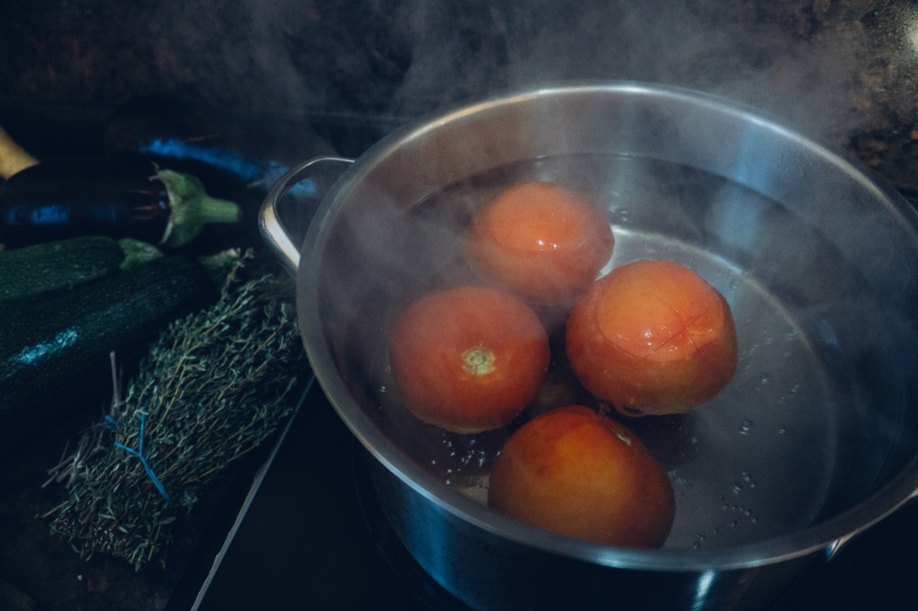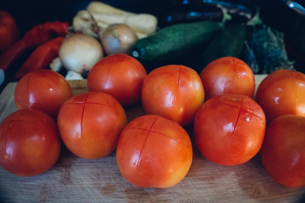 I started off by blanching the tomatoes so that I could skin them. The next step was to slice up all the veg and put my new mandolin cutter to the test. I’ve learned that there is a certain technique to using it, that my mandolin cannot handle the strength of the parsnip and by looking at these slices you could also identify my major problem.