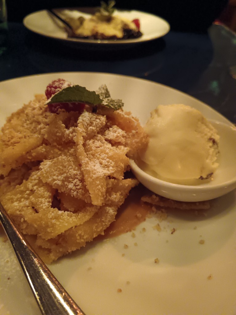 And sandwiched around all that activity was a lot of tasty food! We made sure to try the local delicacies; goulash, weiner schnitzel, stelze (ham hock), Käsekrainer (cheesy hot dogs), Kaiserschmarrn (cut up pancakes), Sachertorte, and of course, apple strudel. All very tasty but all very beige foods so I was glad to get home and eat some vegetables. The one food item that surprised me, and I’m not sure wholly in a good way, was sweet noodles for dessert which was tagliatelle style pasta covered in chopped nuts, icing sugar and apricot jam. It wasn’t bad necessarily but just a combo I wasn’t used to, and not sure I needed pasta after already having a main course.
