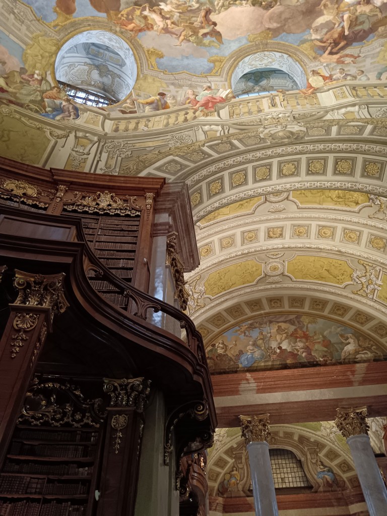 Our fourth and final day began with patisserie in the absolutely stunning Café Central, there’s usually a queue outside but it was worth it in my opinion. We then visited a bunch of spots in and around the Hofburg Palace, including a museum about Esperanto language and globes, a museum about Empress Elizabeth or ‘Sisi’ who they’re obsessed with, and a trip to the treasury where they display all the crown jewels. Finally, and most up my street was a visit to the unbelievably beautiful Grand Hall of the National Library which was the room of my dreams.